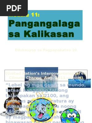 Pangangalaga sa Kalikasan Edukasyon sa Pagpapakatao 10 United Nations Intergovernmental on Climate Change Aug. Pagtukoy sa mga tiyak na impormasyong kinakailangan sa pagsulat ng isang suring-pelikula. 17 2017 18227 views Presentasyon para sa Edukasyon sa Pagpapakatao Inihanda ni S.