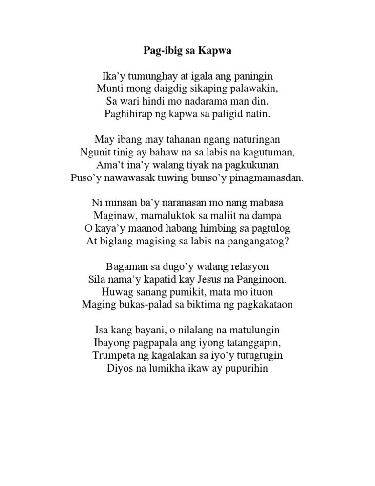 Pag ibig sa kalikasan 5 saknong. 6 Ang bansang sa asta ay tila nga hari maliit na masa ay nilulugami tiyak ang parusa ang apoy ang saksi hindi na aahon kahit na magsisi. Artistas famosas americanas cojiendo. 2020-08-07 Kailangan lamang natin ang tapat pananalig At kakapit sa pakpak ng Kanyang Pag-ibig Ang tulang Pag-ibig ay may 9 na saknong na may sukat na 16.